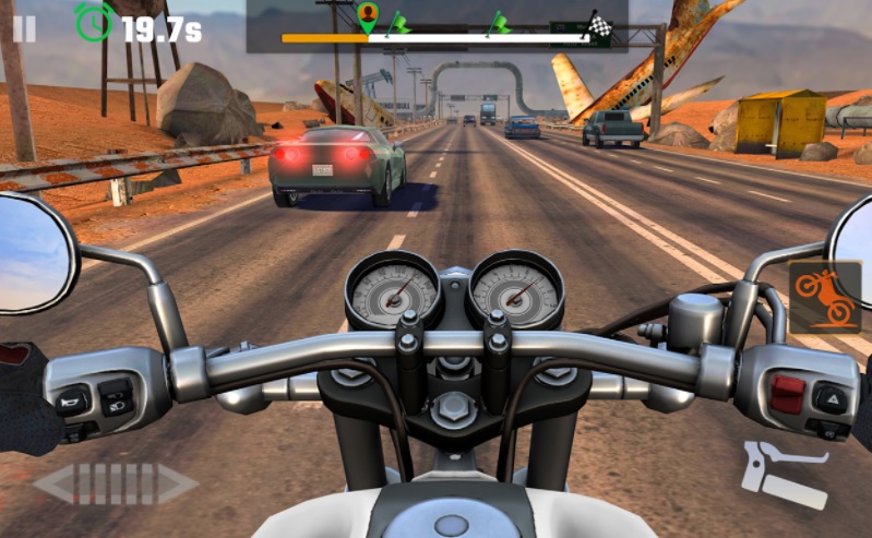 好きなマシンにまたがったら、渋滞するハイウェイの中車の間を縫って駆けていく!1人称視点で楽しめるバイクゲームです。端末を傾けて操作するよう設定すれば、臨場感がさらにアップ。スレスレで車の間をすり抜けていくスリルと爽快感を堪能できます。