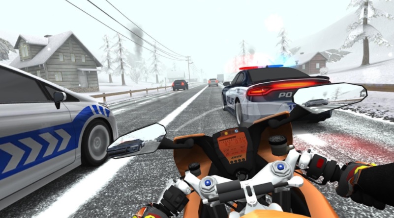 リアルならとてもじゃないけれどもできない、交通ルール無視で公道をひたすら飛ばしていくバイクゲームです。並走する車の間をすり抜けたり前の車にギリギリまで近づいたり、パトカーをフルスロットルで追い抜いたりと、ゲームでしかできない際どい走りが楽しめます。操作方法はもちろん、カメラアングルも選択可能。臨場感のある1人称視点と、全体を見通しやすい後方やや上からの視点で、感覚も変わります。