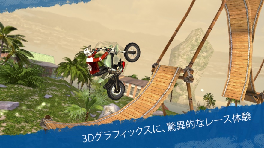 賞金が溜まるとバイクのカスタマイズが可能。コスチュームも選び放題です。美しいグラフィックで表現されるコースや背景は壮大です。なおAndroidは新バージョンの「TrialXtreme 4 Remastered」が2021年7月にリリースされています。