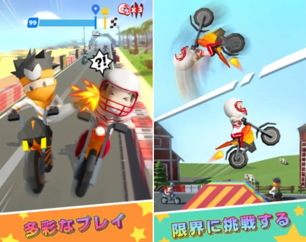 | MiniBikers | ★★★★★ | 無料 | 二頭身のキャラが繰り広げるかわいいながらも本格的かつゲーム性の高いレース |