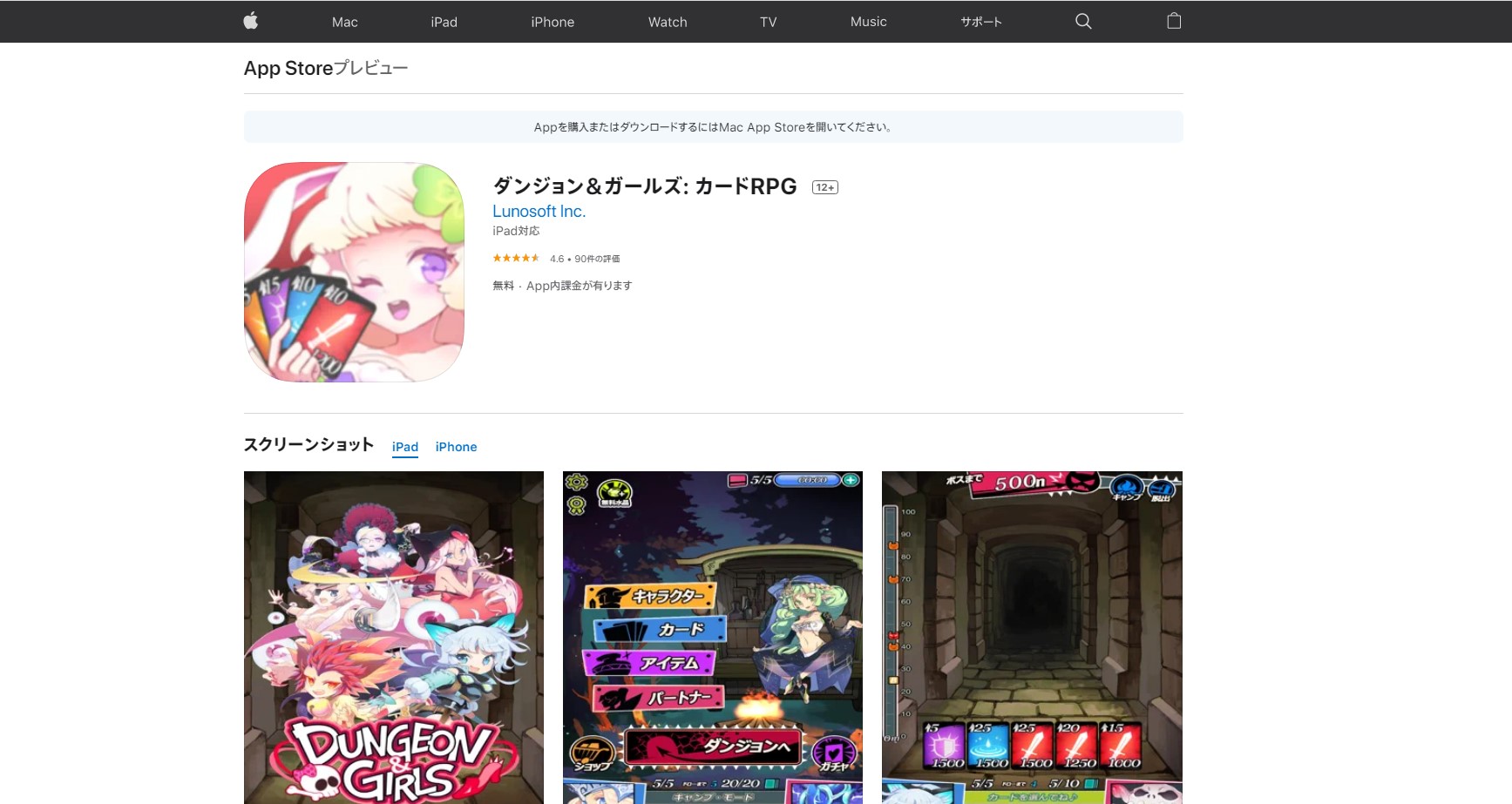 | 公式サイト | https://apps.apple.com/jp/app/%E3%83%80%E3%83%B3%E3%82%B8%E3%83%A7%E3%83%B3-%E3%82%AC%E3%83%BC%E3%83%AB%E3%82%BA-%E3%82%AB%E3%83%BC%E3%83%89rpg/id1448229396 |