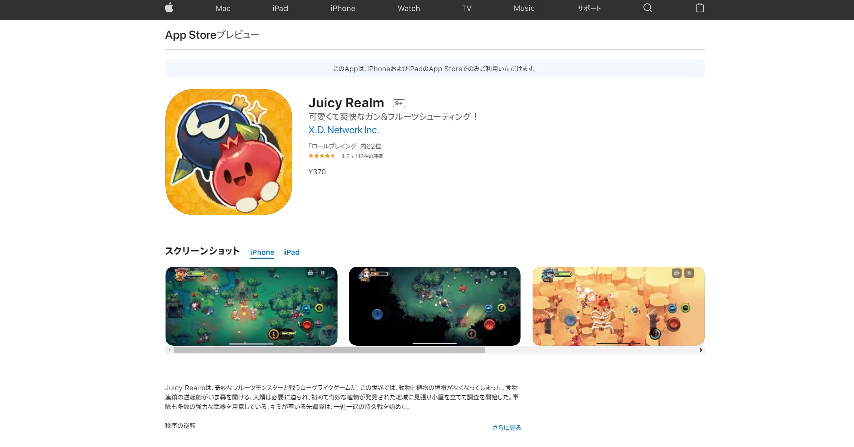 | 公式サイト | https://apps.apple.com/jp/app/juicy-realm/id1453808408?mt=8 |