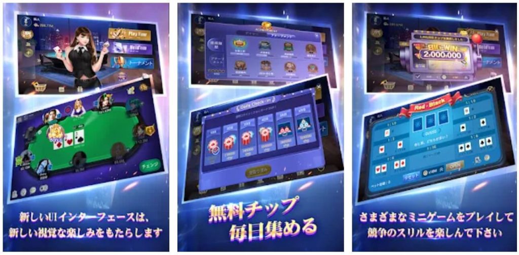 グラフィックもきれいで変化に富んでいて、ミニゲームやイベントモードも多彩で毎日プレイしても飽きません。ポーカー初心者から上級者の方まで満足できる内容になっています。