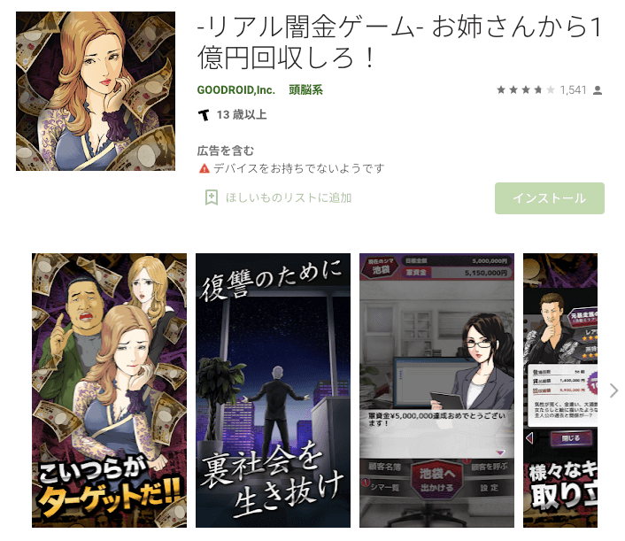 リアル闇金ゲームは裏社会をテーマにしたシミュレーションゲームで、闇金の経営者としてお金を回収していく。