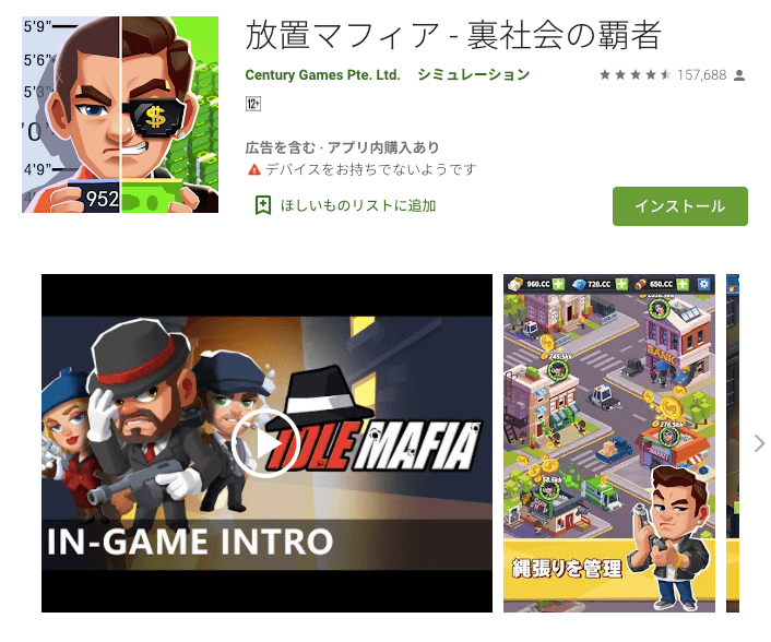 「放置マフィア」は、闇ビジネスをテーマにしたシミュレーションゲームで、独自のマフィア帝国を目指してゲームを進めていきます。