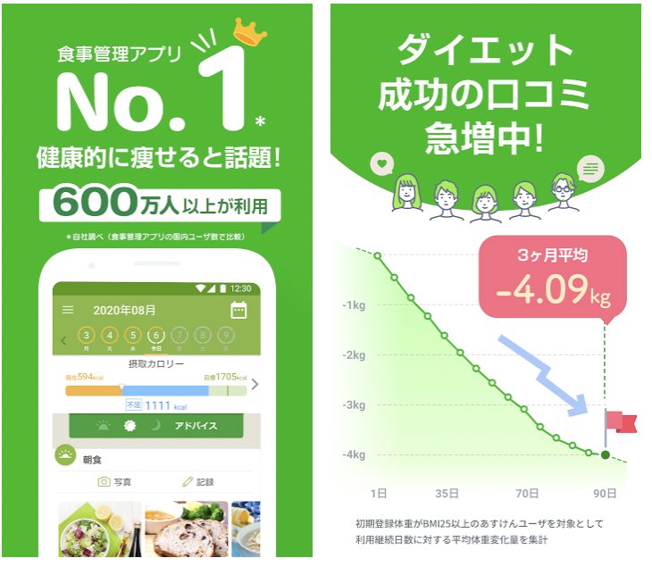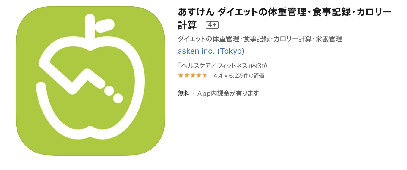 | あすけん | ★★★★★ | 無料 | 栄養士から毎日アドバイスもらえる |