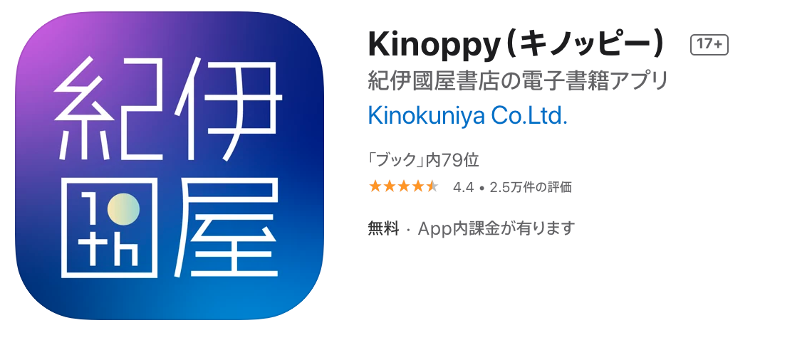 | Kinoppy | ★★★★★ | 無料 | 国内最大級の紀伊国屋書店が配信する書籍アプリで、国内最大級の小説の数! |