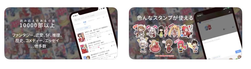スマホに最適されたタテ読みスタイルで、片手でサクサク読むことができるのがポイント。コメントはみんなと共感できるのが楽しいですよね。小説を投稿できるのも、嬉しい機能。投稿した小説を評価してくれた人や、リアルタイムでだれが読んでいるのか、分かるようになっているのは、作家側からすると面白い機能です。読んでいる人が多いので、初心者でもPVが多いのがポイントです。