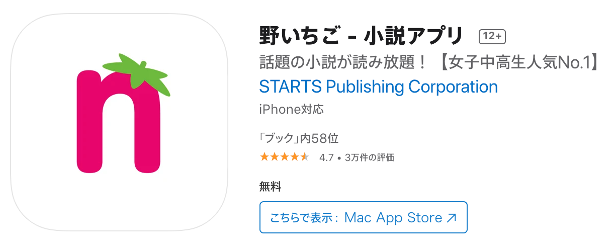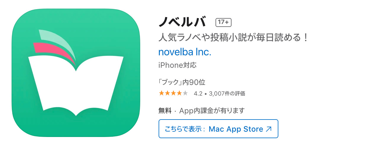 | Kindle | ★★★★★ | 無料 | Amazonで購入した小説が読める書籍アプリです。Kindle UnlimitedやAmazonプライム会員で小説が読み放題! |