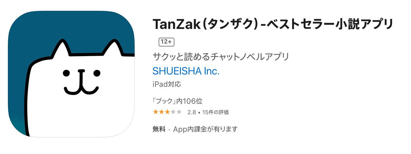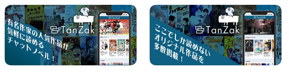 集英社が配信する、出版社では初となる小説アプリです。メッセージアプリのような感覚で、横書きのテキストで読み進めていく新感覚の小説。スマホに最適化されているので、とても読みやすくストレスなくサクサクと読みすすめることができます。集英社が今まで出版してきたベストセラー小説をはじめ、週刊少年ジャンプなどのマンガ雑誌も読めるのが、出版社ならではですね。TanZak(タンザク)でしか読むことができない書き下ろしの新作ノベル、書籍化されていない短編作品などにも注目です!