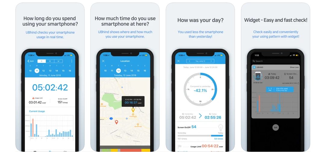 | UBhind - Mobile Life Pattern | ★★★★☆ | 無料 | アプリごとに利用時間がチェックできる!利用状況の把握に便利。 |