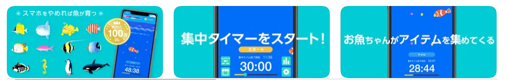 | スマホをやめれば魚が育つ | ★★★★☆ | 無料 | スマホを使っていない時間に魚が育つという画期的なシステムがポイント! |