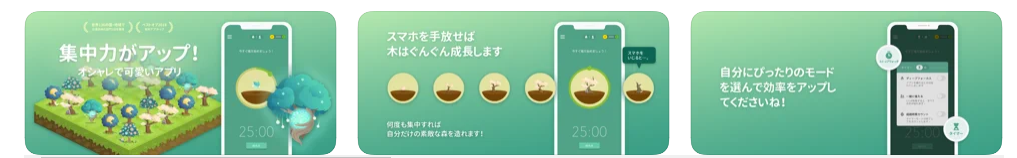 | Forest - 集中力を高める | ★★★★☆ | \250 | スマホを使っていない間に植物が育つ!ワクワクしつつもスマホの時間が減らせる。 |