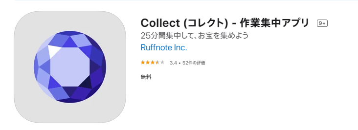 | Collect (コレクト) - 作業集中アプリ | ★★★☆☆ | 無料 | 25分という絶妙な時間設定が、継続意欲を奮い立たせてくれる! |