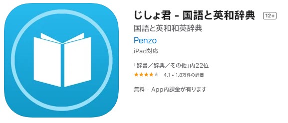 | じしょ君 - 国語と英和辞典 | ★★★★☆ | 無料 | 類語辞典はもちろん、国語、和英、英和、古語、翻訳も利用可 |