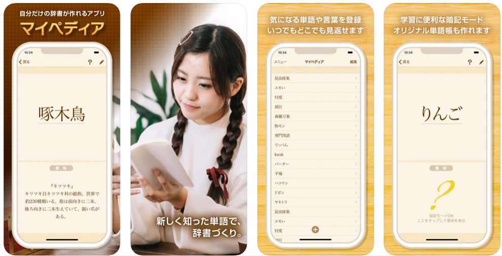 自分だけのオリジナル辞書がつくれる辞書作成アプリです。類語を検索するというよりは、自分で覚えておきたい、後から見返したい内容を登録して、必要なときに検索できる、メモのようなツールです。オリジナルの類語辞典はもちろん、英単語辞書やおもしろ言葉辞典、芸能人の名前辞典、ユーモア辞典、名言集など、作れる辞典は十人十色。アイディアやネタを保存するのに便利です。日本語はもちろん、英語やドイツ語、スペイン語、中国語など、さまざまな言語に対応しています。