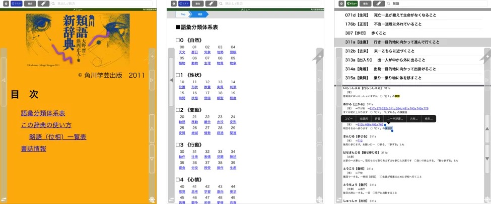 ☑︎類語辞典だけではなく三省堂が出版しているさまざまな辞書を使うことが可能