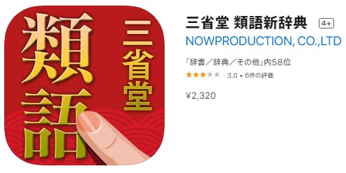 こちらは大手出版社である三省堂が出しているアプリです。キャッチコピーは「使える、楽しい、日本語の地図 最新の類語辞典がここに!」。膨大なデーターベースの中から、自分の気持や表現したいことが伝わる言葉が見つかります。現代語だけでなく古典も収録。「見出し」「文章」「会話」「古風」「俗語」や、季語など、絞り込み検索が充実。文章や手紙を書くときはもちろん、俳句や短歌にも重宝します。バリエーションが豊かで新しい発見ができる類語辞典アプリです。