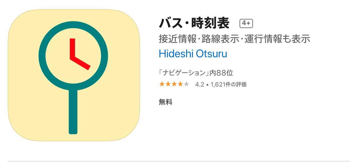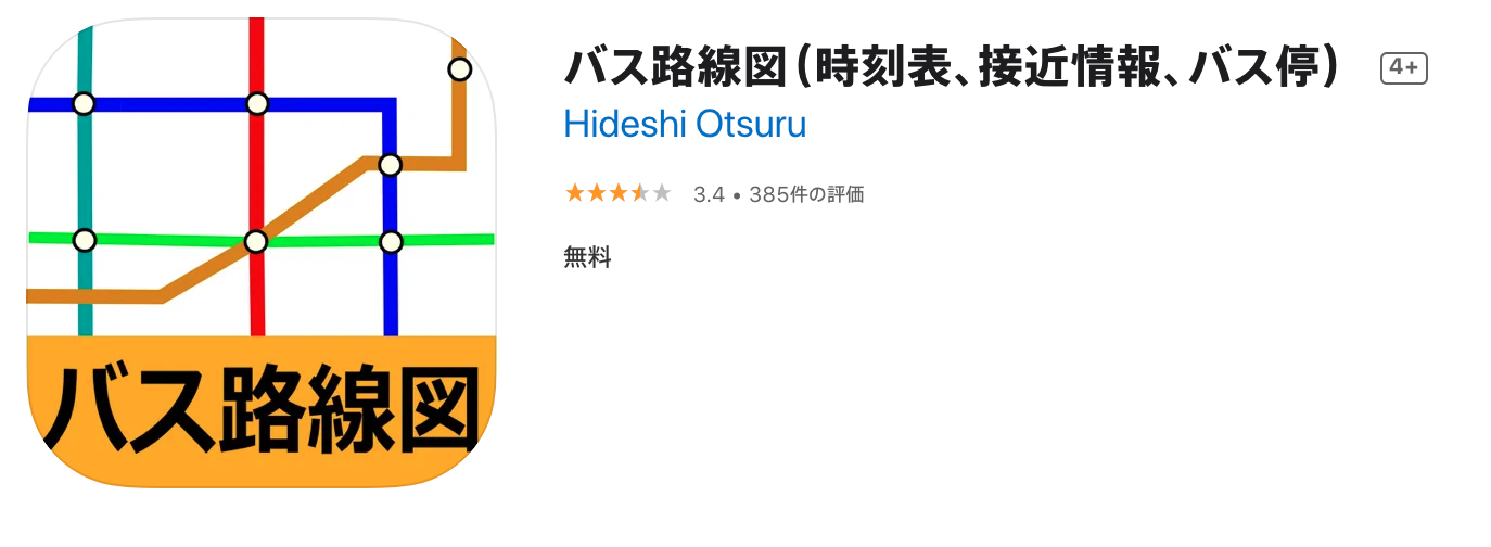 | バス路線図(時刻表、接近情報、バス停) | ★★★★☆ | 無料 | バスの路線で可視化できて、時間を気にせずに済む! |