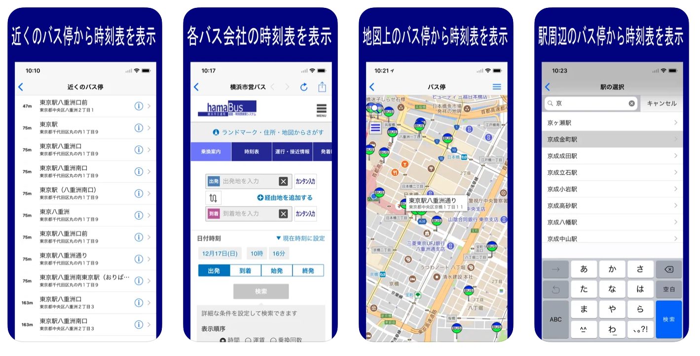 | バス・時刻表 | ★★★★☆ | 無料 | 検索方法が多彩で、どんな状況にも対応! |