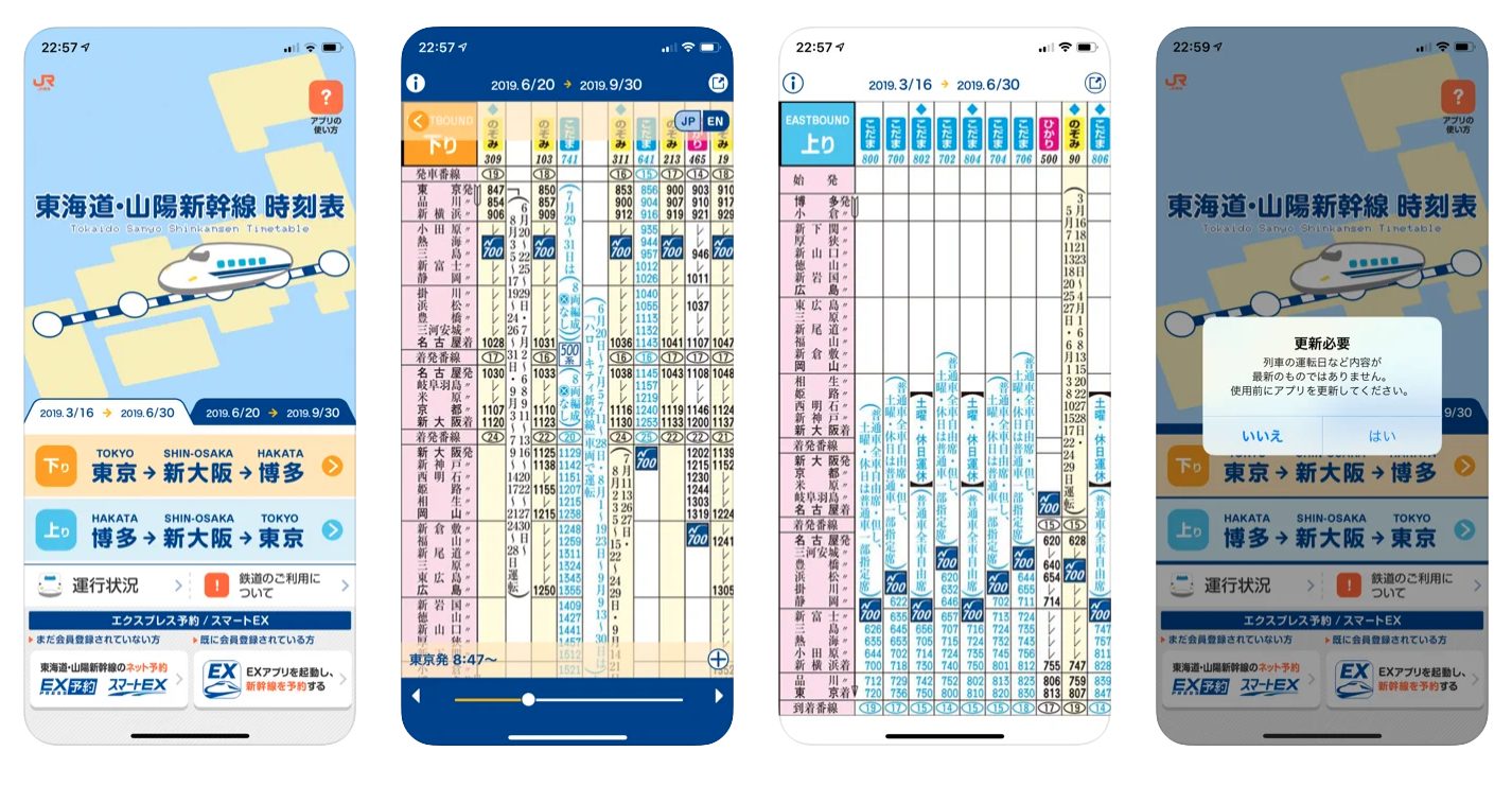 東海道・山陽新幹線のポケット時刻表のアプリ版です。新幹線の時刻表はもちろん、乗り継ぎや列車を選ぶ際にとても便利です。定期的な更新で、より最新情報をチェックすることが可能。ダイヤ改正の際は新旧両方の時刻表をみることができます。毎回駅に時刻表を貰いに行く手間がはぶけて、常時利用する人にとってはとても便利ですね。紙の時刻表と表示が同じなので、紙の時刻表に慣れている人も、すぐに馴染むことができます。